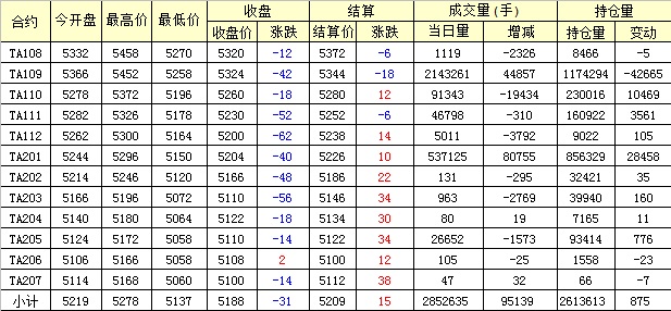 主力TA109合約當(dāng)日交易走勢