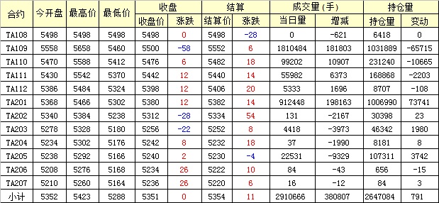 主力TA109合約當(dāng)日交易走勢