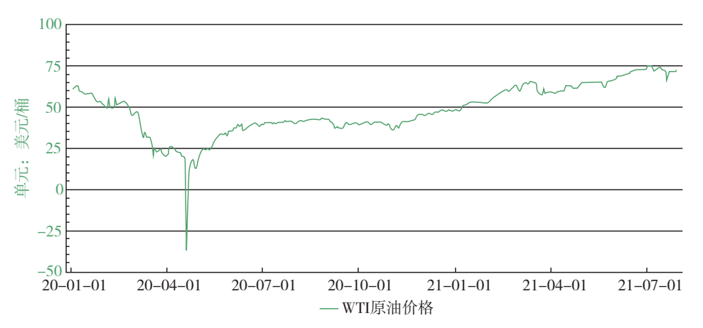 2021年以來,在需求恢復(fù)及通脹預(yù)期的背景下,大宗商品市場持續(xù)走強(qiáng)。同時,石油輸出國組織OPEC繼續(xù)執(zhí)行減產(chǎn),嚴(yán)格控制原油供應(yīng)量。因此,1-6月國際油價持續(xù)上漲,WTI原油價格由年初的50美元/桶左右,6月突破70美元/桶,超過新冠疫情暴發(fā)之前的油價水平(圖2)。