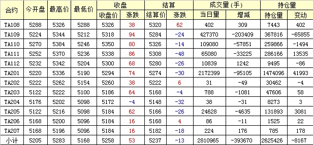 主力TA109合約當(dāng)日交易走勢