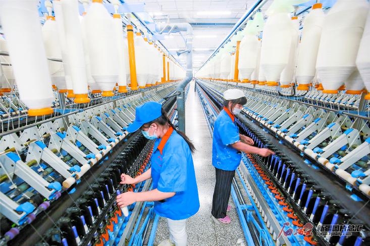 8月11日,位于呼圖壁縣五工臺鎮(zhèn)的新疆宇華紡織科技有限公司員工在生產(chǎn)車間紡紗。近年來,呼圖壁縣積極發(fā)展棉紡產(chǎn)業(yè),堅(jiān)持以增加就業(yè)為導(dǎo)向,全力打造北疆地區(qū)重要的紡織服裝產(chǎn)業(yè)基地。