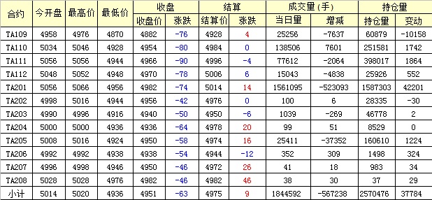 主力TA201合約當(dāng)日交易走勢