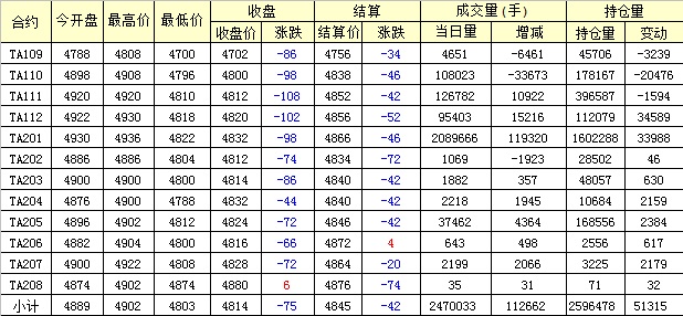 主力TA201合約當日交易走勢