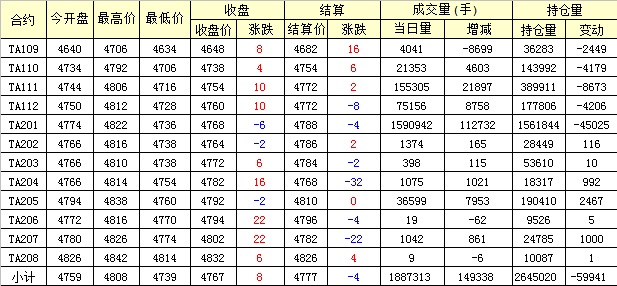 主力TA201合約當(dāng)日交易走勢