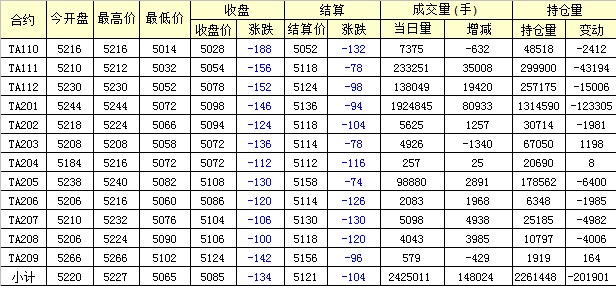 主力TA201合約當(dāng)日交易走勢(shì)