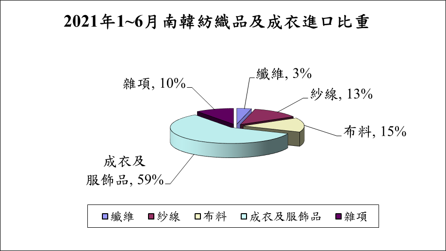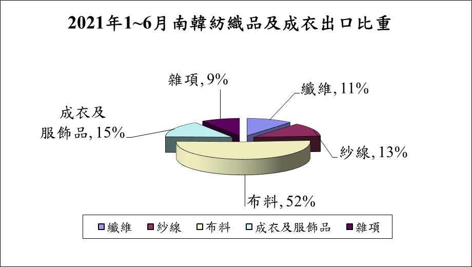 圖一 2021年1-6月韓國紡織品及成衣出口比重
