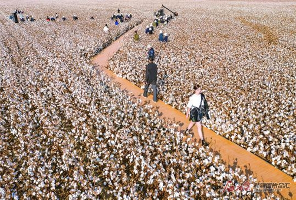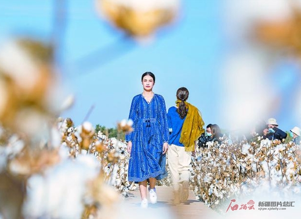 10月10日,在昌吉國家農(nóng)業(yè)科技園區(qū)現(xiàn)代農(nóng)業(yè)示范園的棉田里舉行一場綠色棉田秀活動。模特們身穿以新疆高品質(zhì)棉花為原料制成的服裝走秀,展示新疆高品質(zhì)棉產(chǎn)品的獨特魅力。