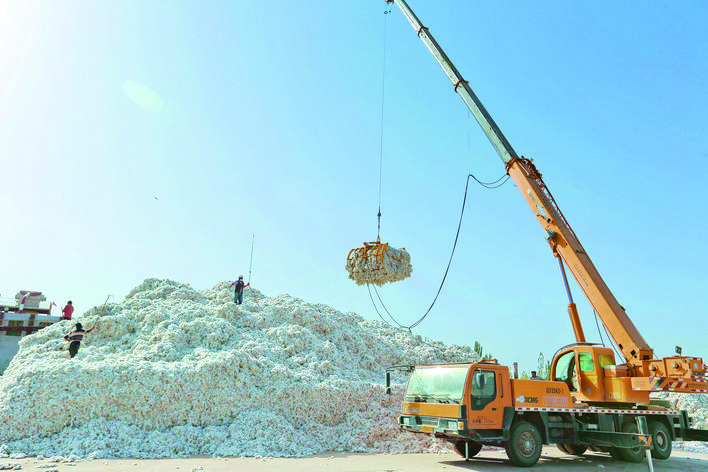 10月18日,庫車銀花棉業(yè)有限責(zé)任公司工人整理剛收購的新棉。
