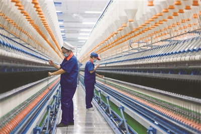 10月13日,位于呼圖壁縣五工臺鎮(zhèn)的新疆宇華紡織科技有限公司生產(chǎn)車間內(nèi),工人正在加緊生產(chǎn)訂單產(chǎn)品。該企業(yè)生產(chǎn)規(guī)模為折合紗錠40萬錠,是目前亞洲規(guī)模最大的氣流紡純棉紗生產(chǎn)基地之一。近年來,呼圖壁縣持續(xù)優(yōu)化營商環(huán)境,并依托當(dāng)?shù)貎?yōu)質(zhì)棉花資源,大力發(fā)展紡織服裝產(chǎn)業(yè),帶動當(dāng)?shù)剞r(nóng)牧民就業(yè),助力縣域經(jīng)濟(jì)發(fā)展。