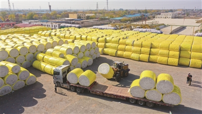 10月19日,棉農(nóng)在呼圖壁縣五工臺鎮(zhèn)云龍棉業(yè)集團(tuán)有限公司銷售新棉。連日來,呼圖壁縣棉花收購廠(企業(yè))做好各項(xiàng)準(zhǔn)備工作,相繼開秤,確保今年棉花收購工作順利進(jìn)行?!?/p>