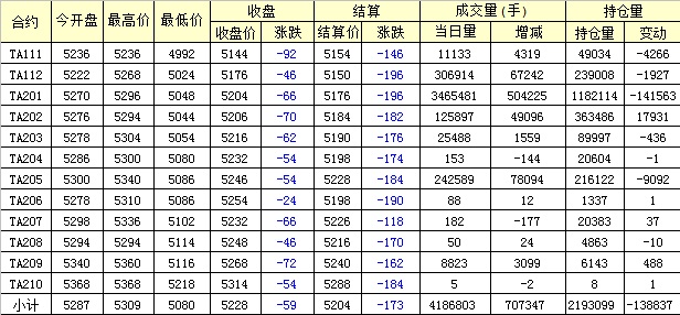 主力TA201合約當(dāng)日交易走勢
