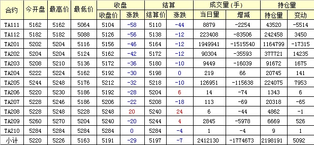 主力TA201合約當(dāng)日交易走勢