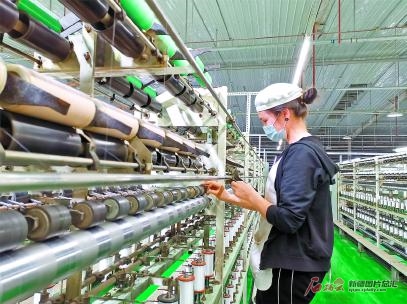 11月9日,員工在紡紗車間作業(yè)。位于阿瓦提縣的寶隆紡織科技有限公司正加緊生產(chǎn),確保3000噸紡紗訂單按時(shí)完成。