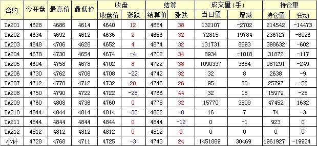 主力TA201合約當(dāng)日交易走勢(shì)
