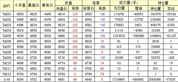 主力TA205合約當(dāng)日交易走勢(shì)