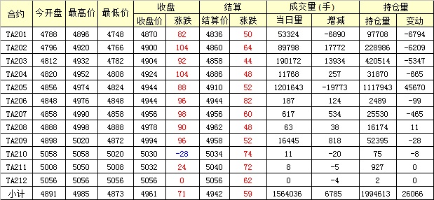 主力TA205合約當(dāng)日交易走勢