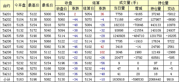 主力TA205合約當(dāng)日交易走勢