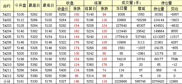 主力TA205合約當(dāng)日交易走勢(shì)