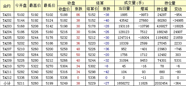 主力TA205合約當(dāng)日交易走勢