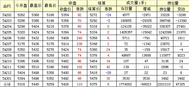 主力TA205合約當(dāng)日交易走勢(shì)