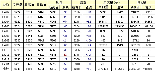 主力TA205合約當(dāng)日交易走勢