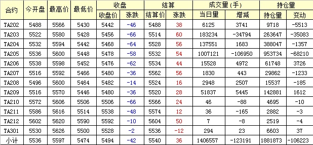 主力TA205合約當(dāng)日交易走勢