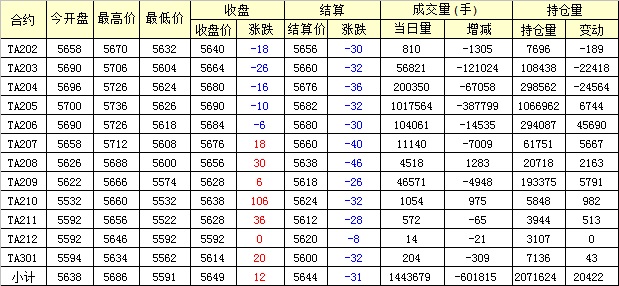 主力TA205合約當(dāng)日交易走勢