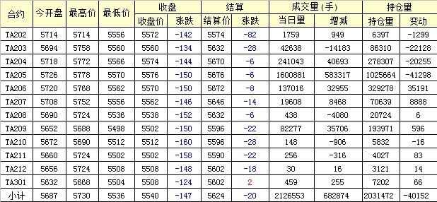 主力TA205合約當(dāng)日交易走勢
