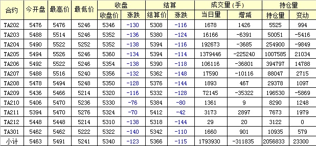 主力TA205合約當日交易走勢