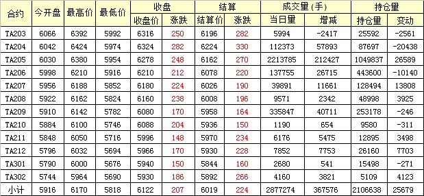 主力TA205合約當(dāng)日交易走勢