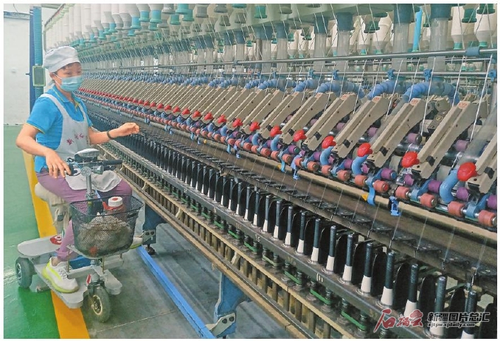 2月13日,烏蘇新潤和紡織有限公司員工在生產(chǎn)車間趕制訂單。今年,該公司計劃月生產(chǎn)棉紗1000噸以上,年產(chǎn)值將突破2.5億元。