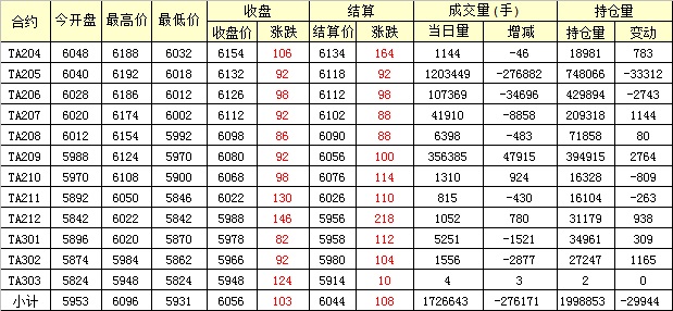 主力TA205合約當(dāng)日交易走勢(shì)