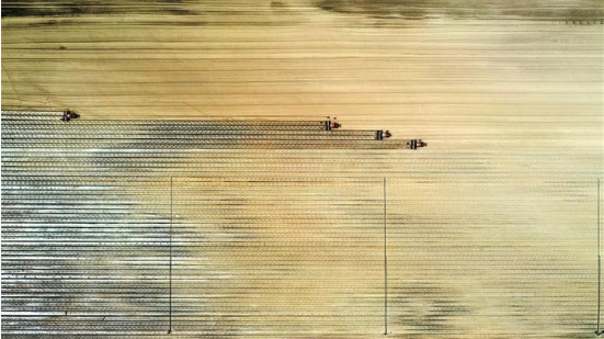 4月2日,三師五〇團(tuán)職工使用北斗導(dǎo)航無(wú)人駕駛播種機(jī)播種棉花。今年,三師計(jì)劃種植棉花113萬(wàn)畝,大面積采用“干播濕出”種植技術(shù),用水量只有傳統(tǒng)播種方式的20%。