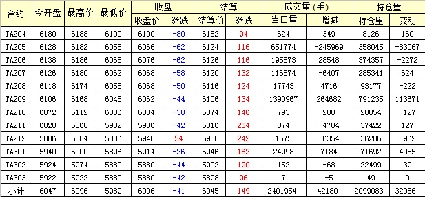 主力TA205合約當(dāng)日交易走勢