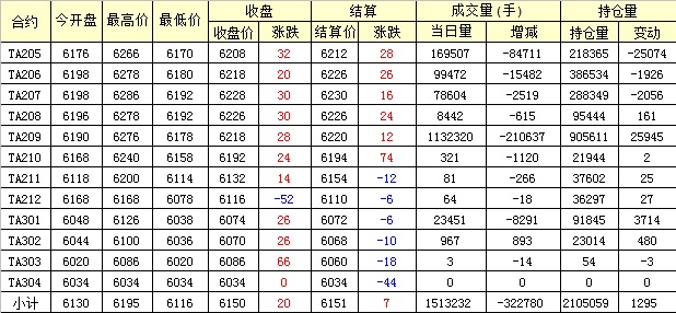 主力TA205合約當日交易走勢