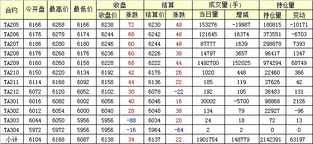 主力TA205合約當(dāng)日交易走勢(shì)
