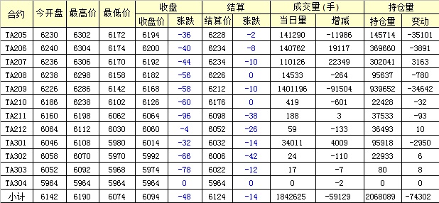 主力TA205合約當(dāng)日交易走勢