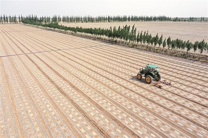 5月6日,一臺(tái)拖拉機(jī)在五師雙河市八十六團(tuán)八連棉田里進(jìn)行中耕作業(yè)。當(dāng)下,五師雙河市種植的75萬(wàn)畝棉田進(jìn)入田管階段,各植棉團(tuán)場(chǎng)及時(shí)組織職工群眾抓好中耕工作,進(jìn)行田間精細(xì)化管理,為棉花高產(chǎn)奠定基礎(chǔ)。