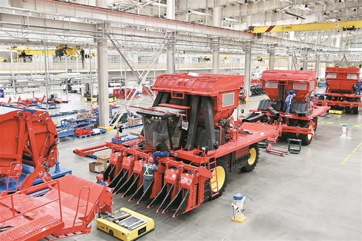 5月11日,新疆天鵝現(xiàn)代農(nóng)業(yè)機械裝備有限公司工人在組裝采棉機。該公司研發(fā)的六行自走式打包采棉機填補了國內(nèi)空白,其高端采棉機制造項目總投資10億元,年可產(chǎn)采棉機300臺,目前已簽訂訂單450臺,預(yù)計今年可實現(xiàn)產(chǎn)值21億元。