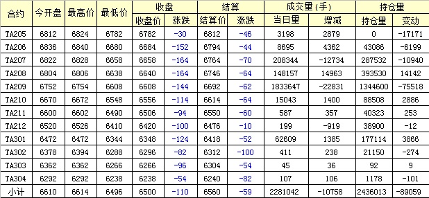 主力TA209合約當(dāng)日交易走勢