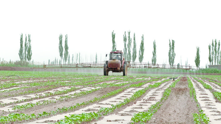 5月24日,在溫宿縣古勒阿瓦提鄉(xiāng)提根村,棉農(nóng)利用機(jī)械進(jìn)行棉花田間管理。時(shí)下,正值地區(qū)720萬(wàn)畝棉花田間管理關(guān)鍵期,各地棉農(nóng)搶抓農(nóng)時(shí),紛紛開展中耕、化調(diào)、植保等工作,確保今年棉花豐產(chǎn)豐收。