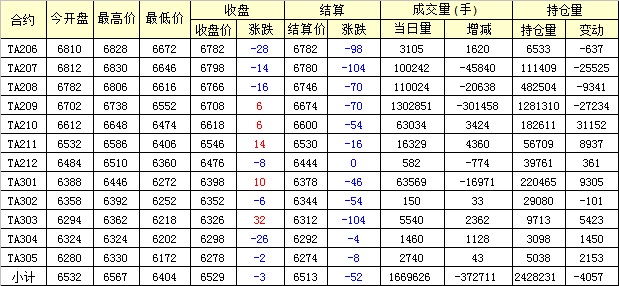 主力TA209合約當(dāng)日交易走勢(shì)