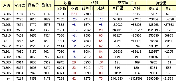 主力TA209合約當(dāng)日交易走勢(shì)