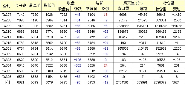 主力TA209合約當(dāng)日交易走勢(shì)
