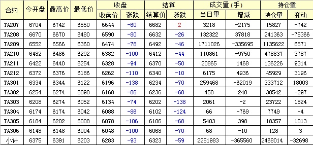 主力TA209合約當日交易走勢