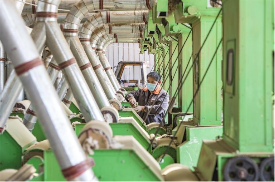 9月5日,位于呼圖壁縣五工臺(tái)鎮(zhèn)的云龍棉業(yè)有限公司車間,員工在檢修棉花加工設(shè)備。