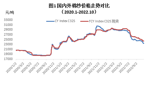 本月內(nèi)外棉紗價(jià)格均繼續(xù)下跌,國(guó)產(chǎn)32支純棉紗10月均價(jià)為24026元/噸,較上月下降510元,跌幅2.08%,較去年同期下降6315元,跌幅20.8%;進(jìn)口32支純棉紗10月均價(jià)為24723元/噸,較上月下降833元,跌幅3.26%,較去年同期下跌4125元,跌幅14.3%。