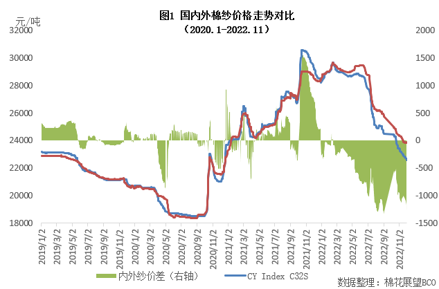 二、內(nèi)外棉紗價格均下跌