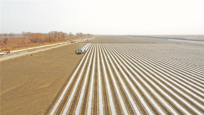 3月27日,二師三十一團(tuán)11.2萬(wàn)畝棉花播種工作全面展開,在該團(tuán)七連的棉田里機(jī)聲隆隆,呈現(xiàn)一派繁忙的春播景象。