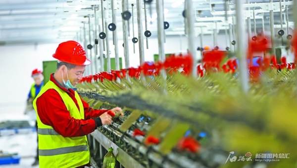 4月11日,博樂市邊境經(jīng)濟(jì)合作區(qū)20萬錠紡紗項目(一期)建設(shè)現(xiàn)場,工作人員在安裝調(diào)試設(shè)備。該項目建成后,將為博樂市紡織產(chǎn)業(yè)起到強(qiáng)鏈、補(bǔ)鏈作用,提升企業(yè)在紡織市場上的競爭力。